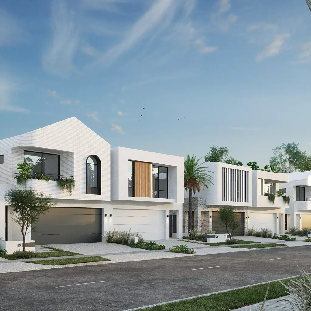 Each residence has been thoughtfully planned to suit its narrow frontage, with intelligent zoning, light-filled living spaces and a strong connection between indoor and outdoor areas. The front-loaded configuration creates a welcoming street presence while maximising usable space throughout the home.